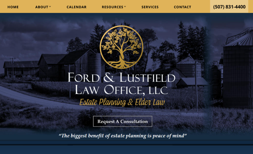 “Thank you so much Marjorie for your help with this and patience as we found time to get you information. It looks amazing and is going to be a great addition to the new office. She was so easy to work with and patient as we slowly provided her information for the website. I am sooo happy with the end result!!”Cassandra L.Ford & Lustfield Law Office, LLC in Windom, MN